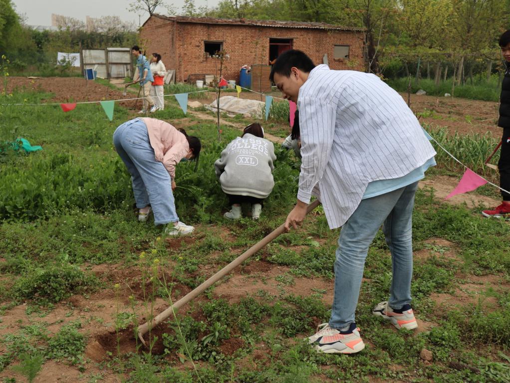 4月15日下午,在第一环节“理论学习”结束后,支部12名学生党员来到了长安校区西门一户农民的家中,进行实践劳动教育。